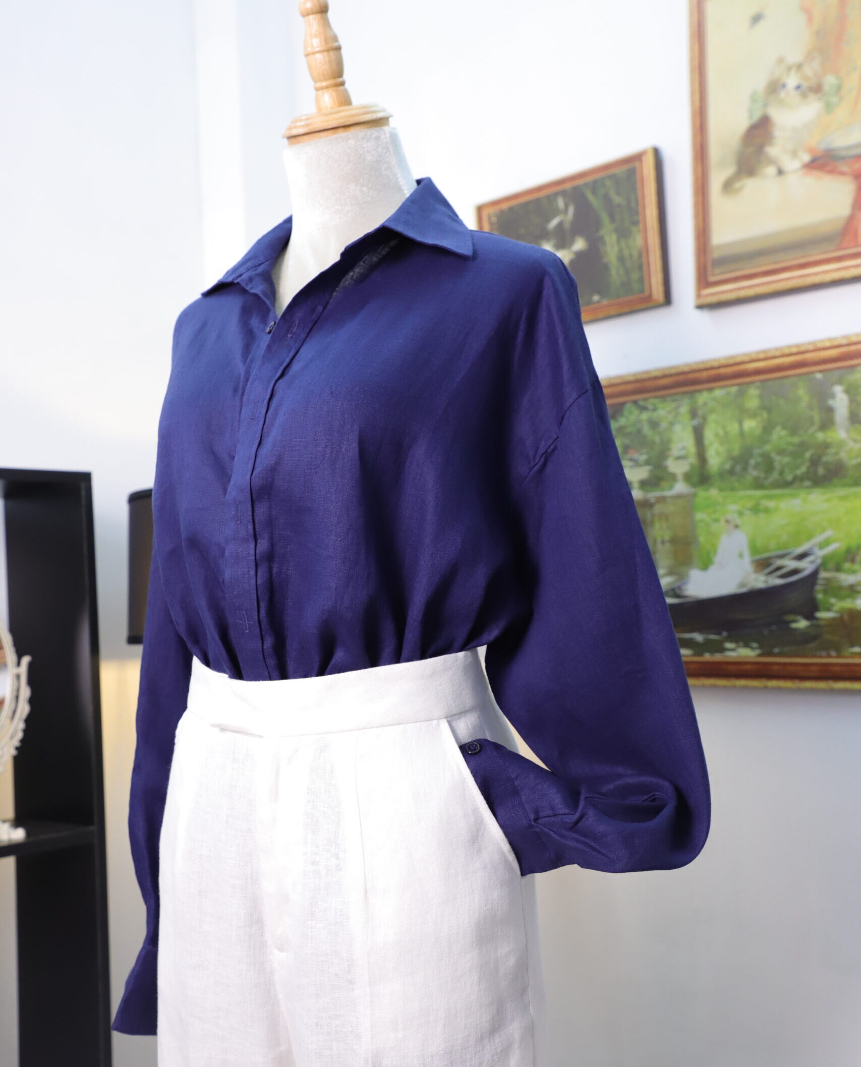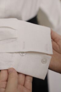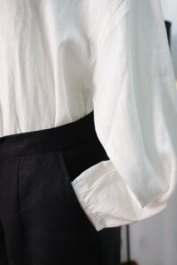 - May lộn (French Seams): Thay vì sử dụng các kỹ thuật may nhanh (như Overlock), chúng tôi ưu tiên kỹ thuật May lộn (French Seam) cho các item cao cấp (như áo Linen). Kỹ thuật này giấu đi mép vải thô bên trong, mang lại bề mặt sạch sẽ, bền chắc gấp đôi và tạo cảm giác mềm mại hơn khi tiếp xúc với da (lý tưởng cho da nhạy cảm).
